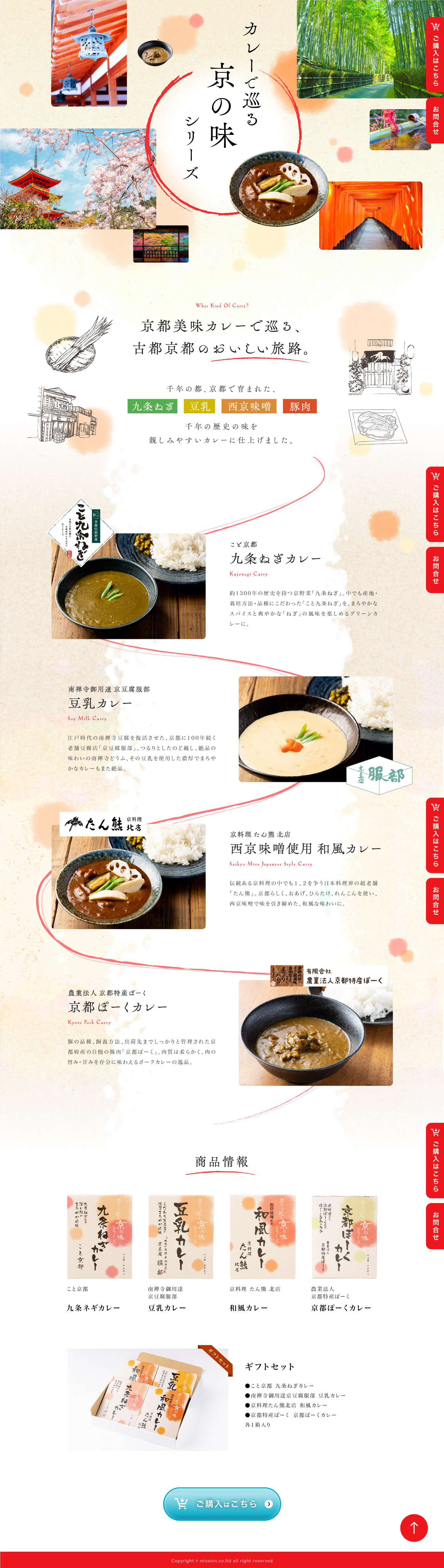 ミッションさんにて発売している京の味シリーズカレーのLPとサイト用バナーを担当しました。