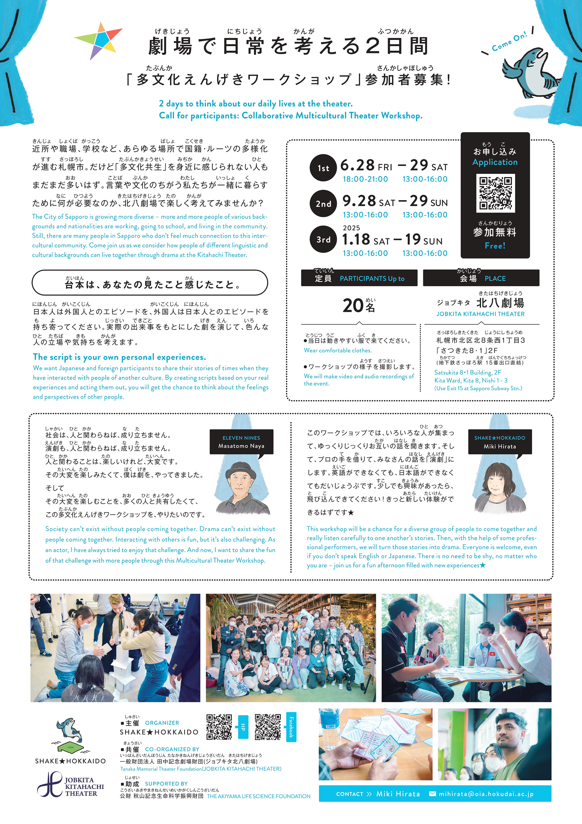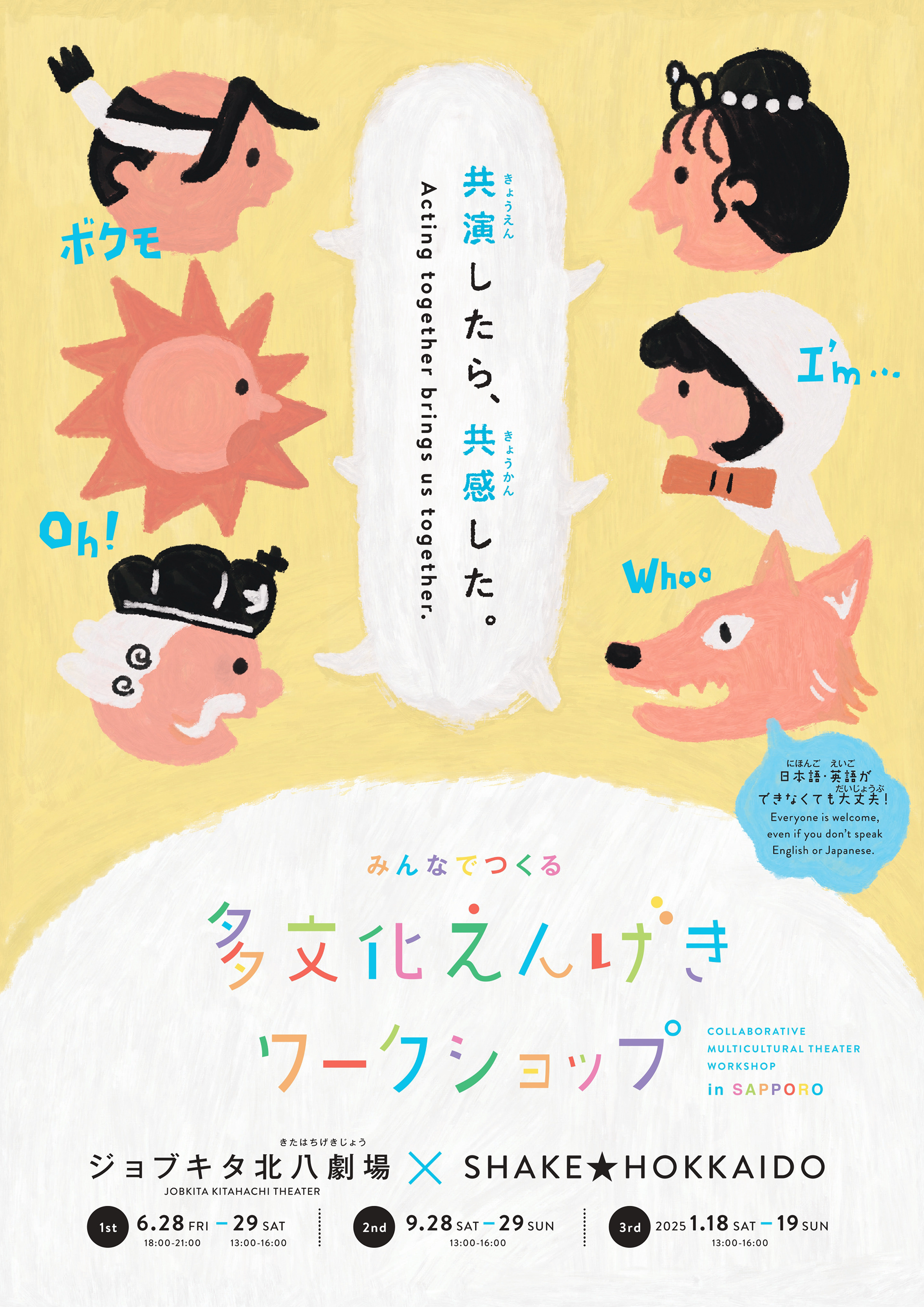 ジョブキタ北八劇場✖️SHAKE★HOKKAIDOが共同で行うワークショップ「みんなでつくる 多文化えんげきワークショップ」のフライヤーを制作いたしました。